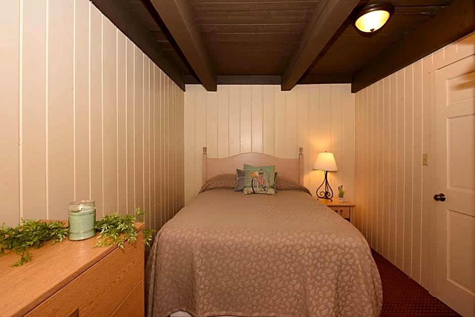 Acorn Chalet is a cozy two bedroom chalet overlooking the ski slopes and conveniently adjacent to the ten story hotel and main lodge activities. Recently renovated to ADA standards, the unit offers an updated kitchen and cozy bedding arrangements along with a screened porch off the kitchen. The master bedroom with a king bed and bathroom is located on the main floor and is fully ADA compliant. Also located on the main floor is the open full kitchen area, dining room area that seats six people, and the living room area offering a flat screen TV with large window that overlooks the pictuesque Tyrol ski slope. Upstairs is a spacious bedroom with one king bed, one daybed with a trundle, a full bathroom and a flat screen TV. A bonus feature of Acorn is it can be connected to the Watercress Chalet next door which increases the sleeping capacity to 16, offering 5 bedrooms, 4 bathrooms and two kitchens. Ski and Snowboard storage is also available.